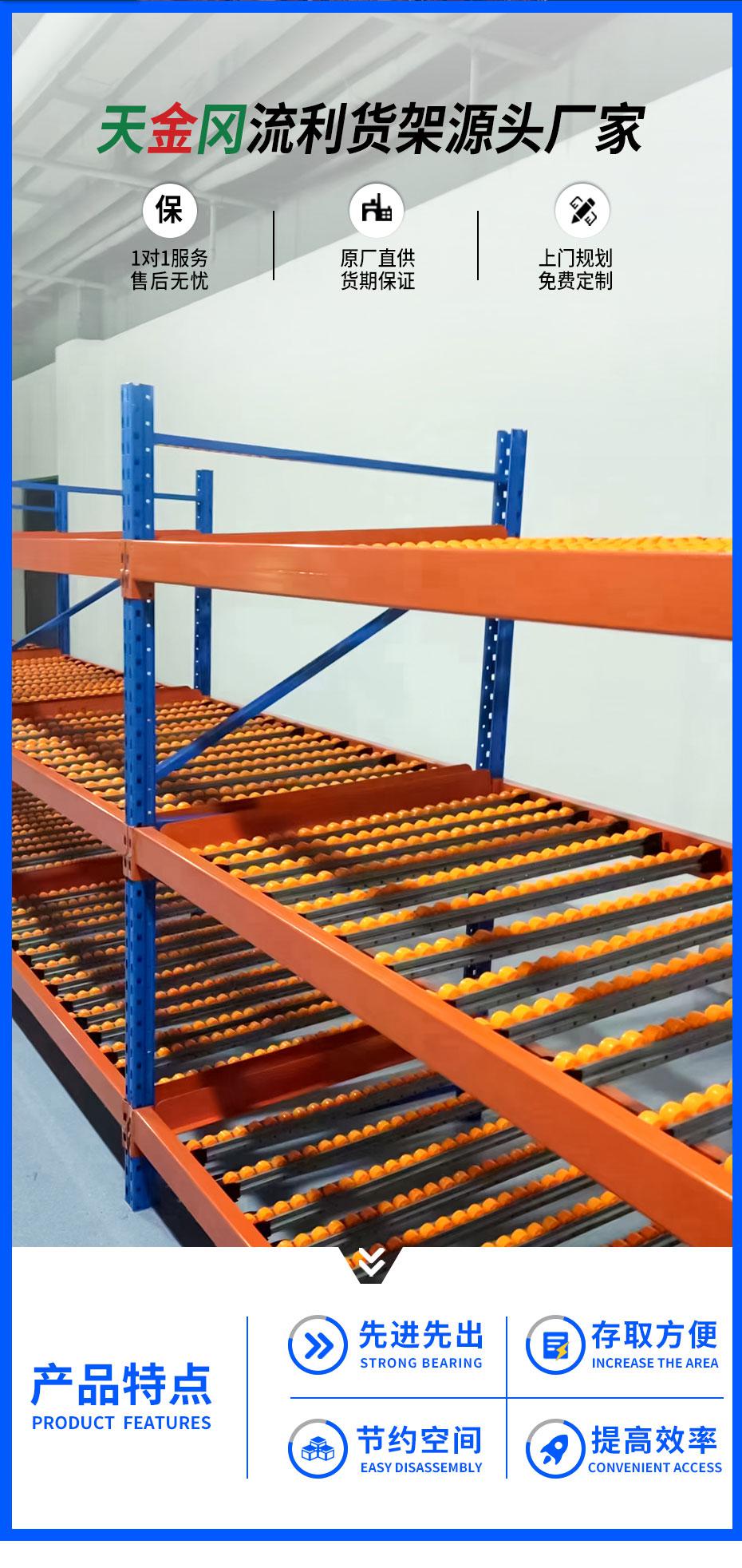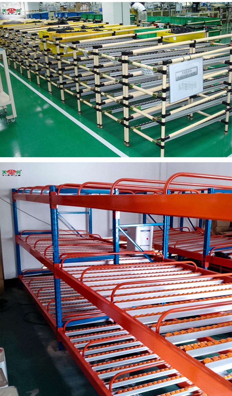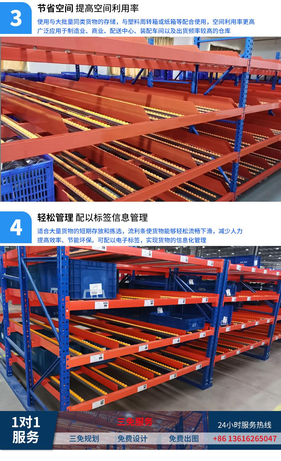 利用流利条的倾斜度和货物的自重,从一边通道取货,实现货物的先进先出可实现一次捕获,多测拣货,提高工作效率